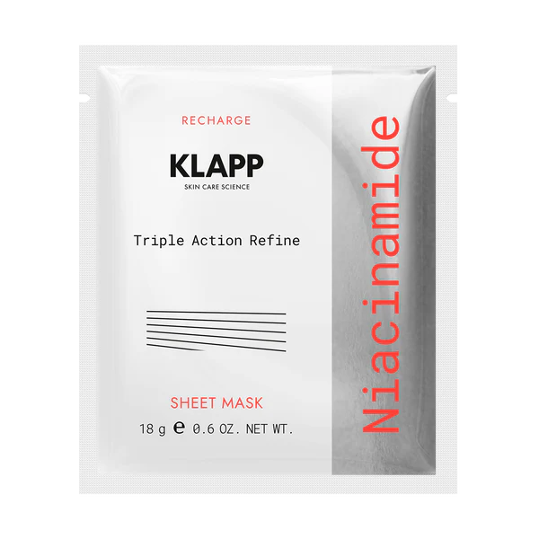 Mascarilla Refinadora Triple Acción con Niacinamida. Esta mascarilla, con niacinamida y colágeno vegetal, hidrata la piel y mejora su elasticidad. Reduce las líneas de expresión y arrugas, y la piel luce mucho más suave y uniforme.