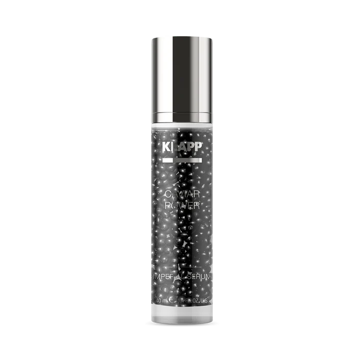 El secreto del Suero Imperial, con su extraordinaria acción para una piel radiante y joven, se basa en la fórmula única de perlas de caviar, tecnología exclusiva de Klapp.